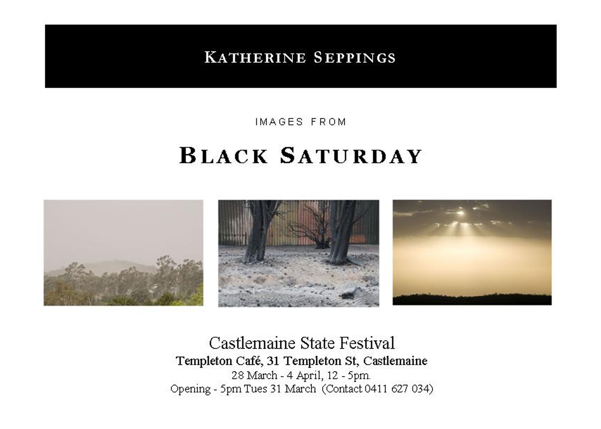 A selection of images from Katherine Seppings’ photographic documentation of the Bendigo fires and the entire Kilmore East – Murrindindi fire path: the destruction and the havens.